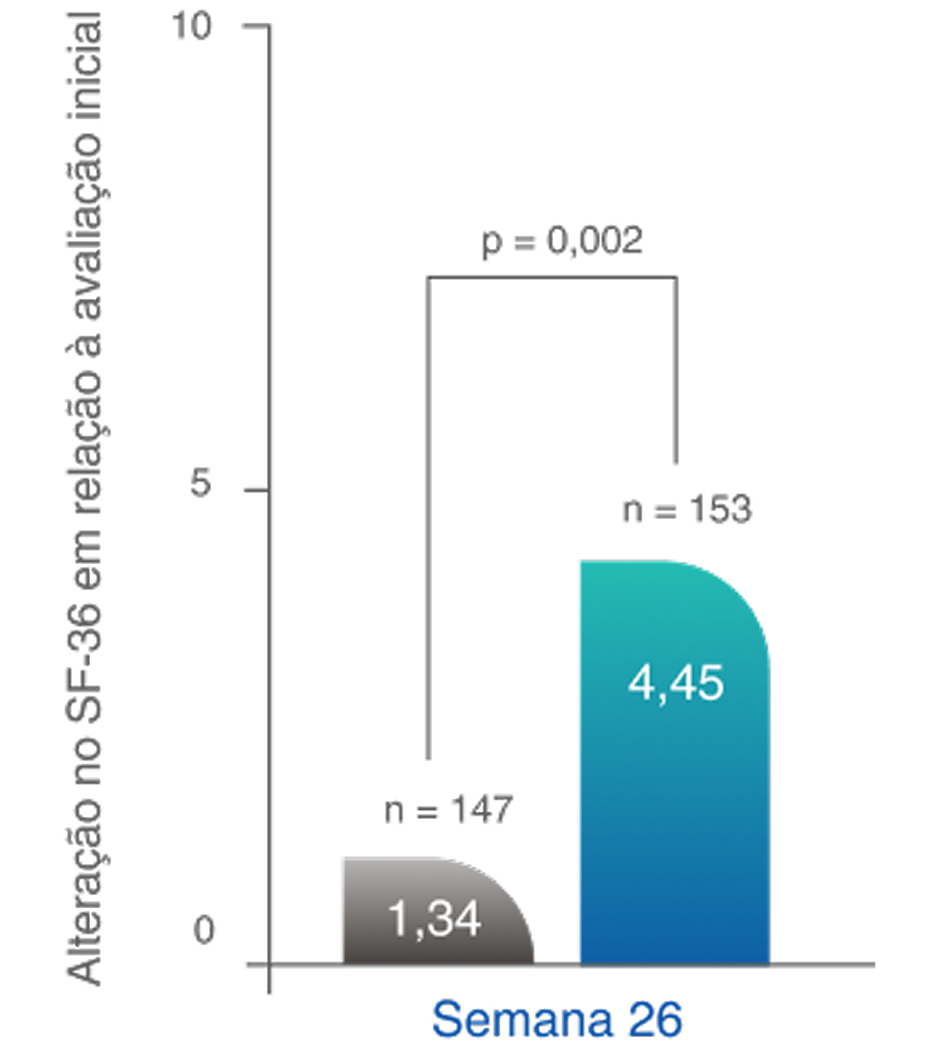 †Foi observada uma melhora numérica na QoL mental.6