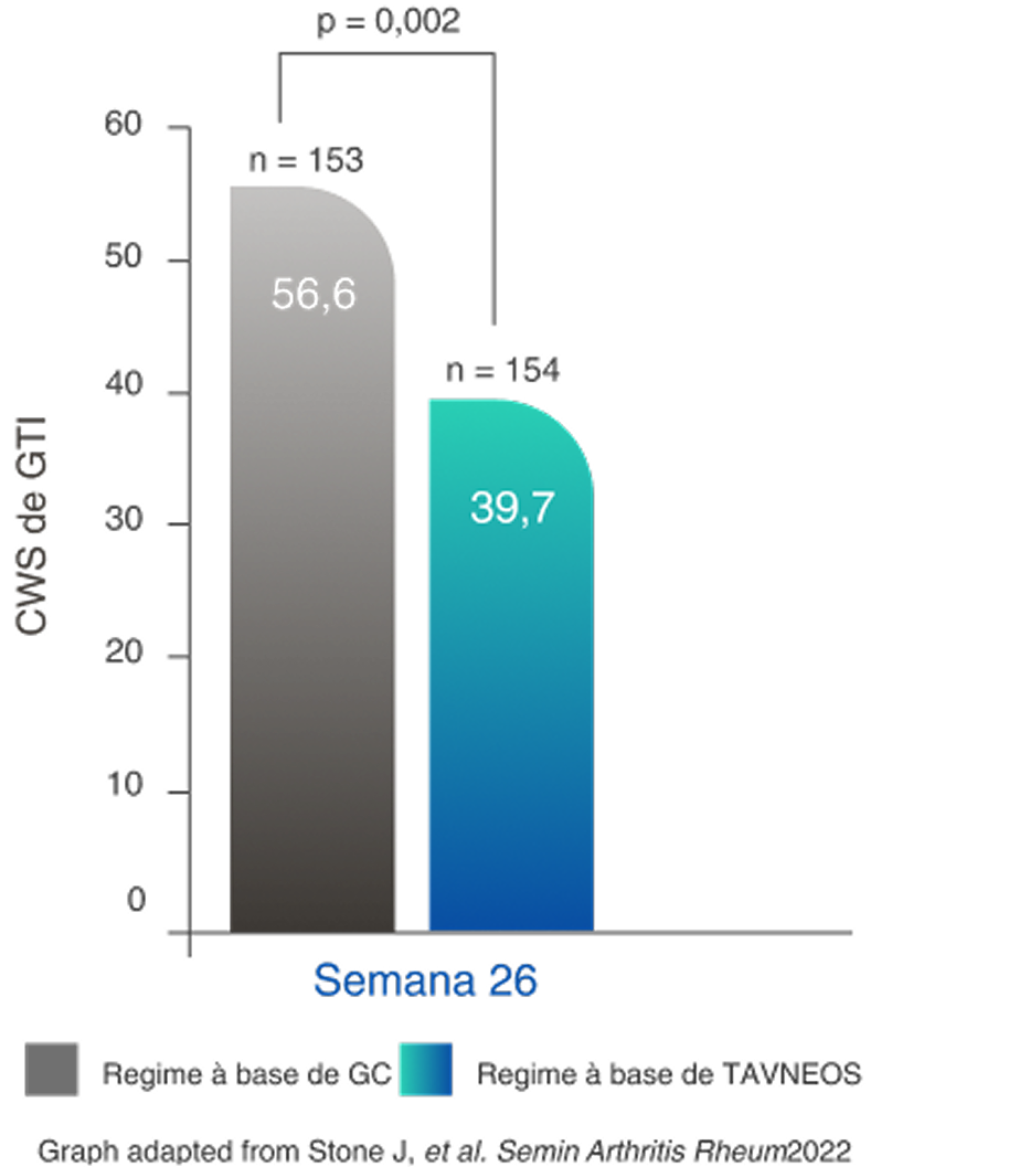 Na semana 26, o regime baseado em TAVNEOS demonstrou não inferioridade em atingir a remissão clínica versus o regime baseado em GC2