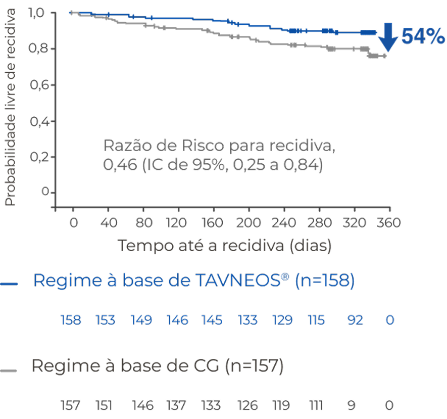 O regime baseado em TAVNEOS resultou em um menor risco absoluto de recidiva versus um regime baseado em GC ao longo de 52 semanas2